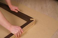• Готовые бруски выкладываются на ровную поверхность и аккуратно совмещаются. Чтобы не поцарапать и не испачкать пол, мы используем картонную подложку.